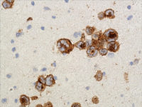 In normal postnatal conditions ALK is localized only in the cytoplasm of a few cells in CNS and as granular cytoplasmic staining reaction of ganglion cells and axons.
