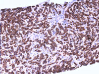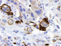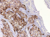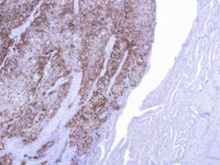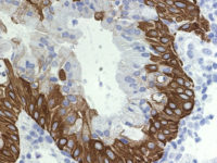 - When used in appropriate diagnostic context in panel with other antibodies it may help to establish the origin of primary tumor to pancreato-biliary tract (CK7+/- CK20+/- CA125+/- and CK17+/-), particularly when origin in gastrointestinal tract is considered in differential diagnosis (CK7-/+ CK20+/- CA125- and CK17-).